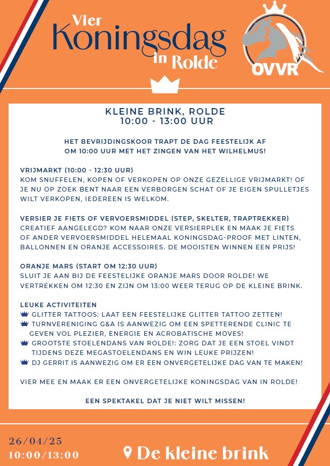 Vier mee en maak er een onvergetelijke Koningsdag van in Rolde!